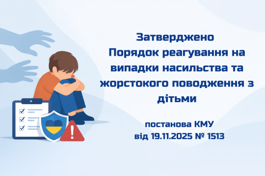 Затверджено Порядок реагування на випадки насильства та жорстокого поводження з дітьми